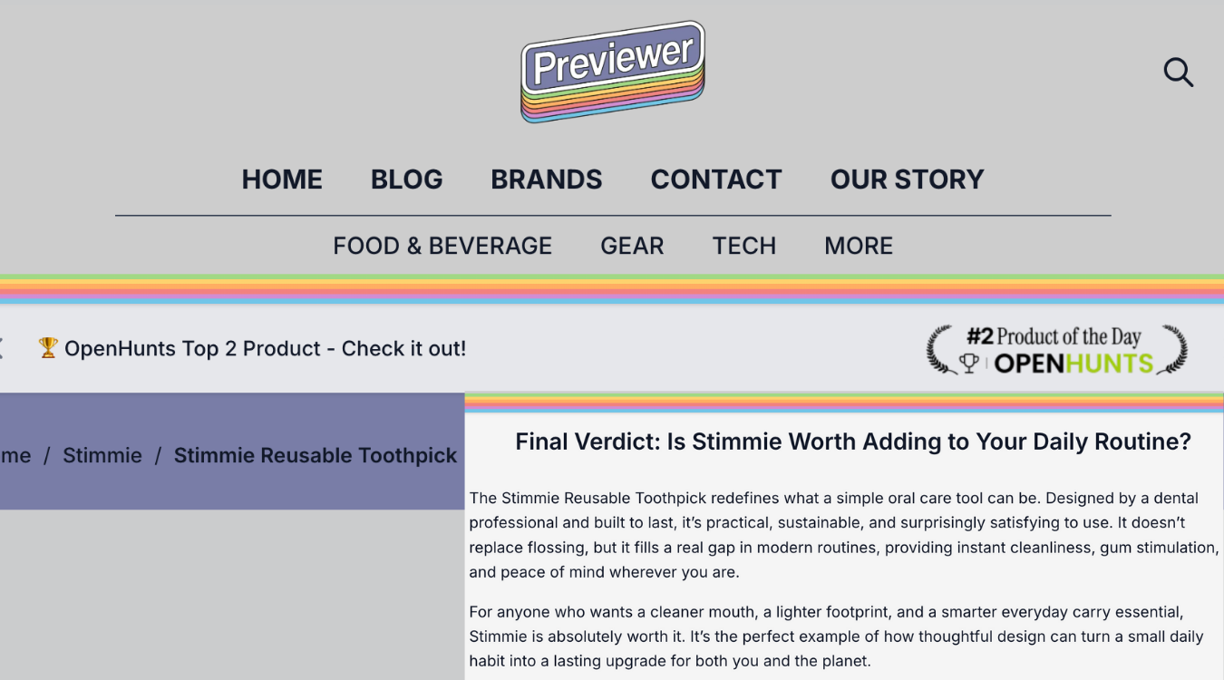 Stimmie removes food and debris without the fuss. Easy to use, easy to clean and effortless.